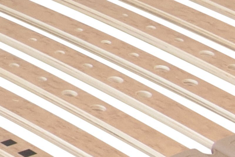 Portoflex EXTRA je inovativní rošt, který napomáhá řešení problémů s bederní lordózou (prohnutí páteře). Výškové nastavovače umožní 5 stupňů podpory v bederní části. Jeho pružné lamely jsou rozděleny do pěti anatomických zón, což poskytuje optimální podporu pro každou část těla. Speciální změkčení lamel v ramenní oblasti pomáhá snižovat tlak na ramena a středový popruh zajišťuje vysokou stabilitu roštu. Navíc, výkyvná pouzdra nad bočnicí zvyšují nosnost a odolnost proti prudkému zatížení. Lamely jsou opatřeny ochrannou folií, což prodlužuje jejich životnost a zajišťuje snadnou údržbu. S Portoflex EXTRA získáte kvalitní podporu pro vaše tělo.