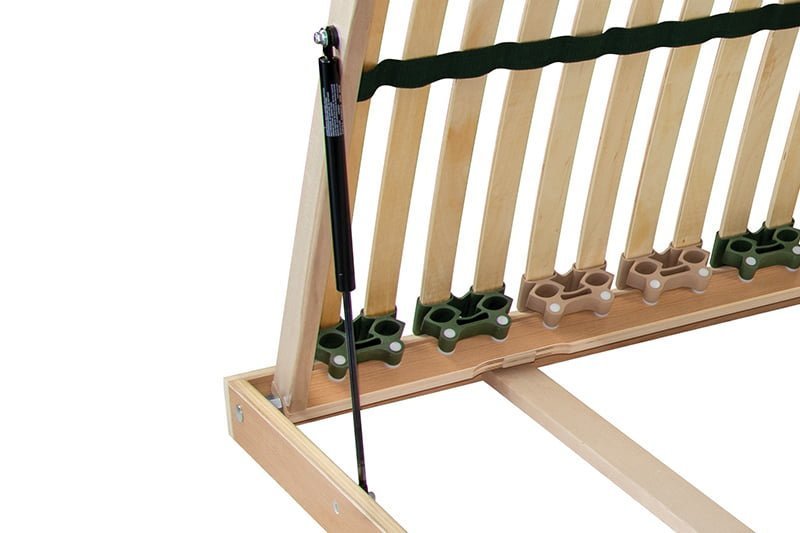 Díky zpevněné konstrukci a silnějším lamelám je tento rošt přizpůsoben pro vyšší zátěž, až 150 kg. Postelový rošt s bočním výklopem pro přístup do úložného prostoru řeší nedostatek místa v ložnici.